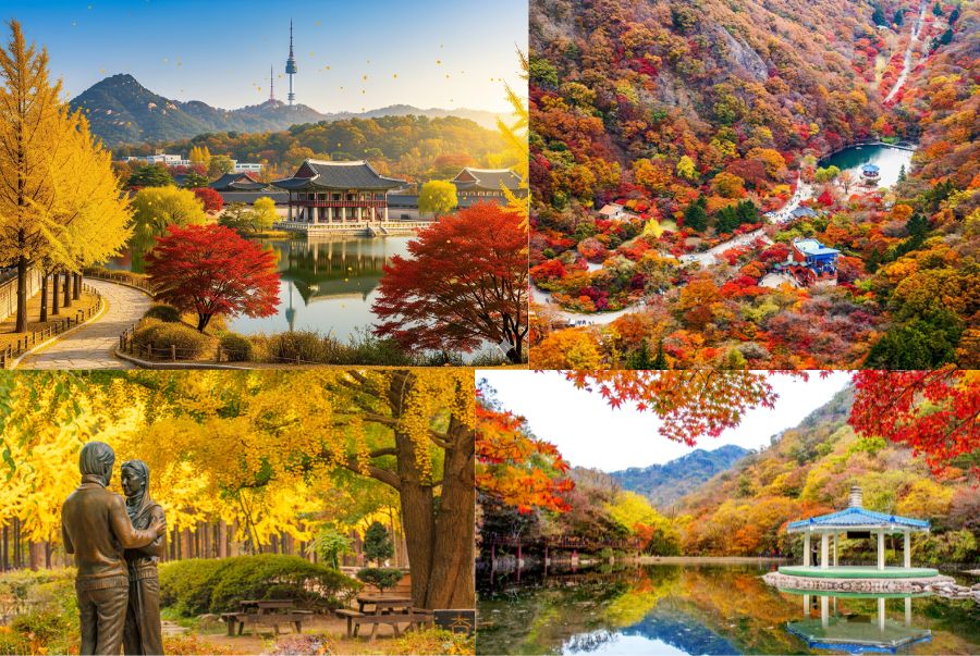 Là cung điện lớn nhất và lâu đời nhất tại thủ đô Seoul, Gyeongbokgung không chỉ là biểu tượng văn hóa, lịch sử của Hàn Quốc mà còn là một trong những điểm đến tuyệt vời nhất trong các hành trình tour du lịch Hàn Quốc mùa thu. Khi lá bắt đầu chuyển sang sắc vàng óng ánh và đỏ rực, từng góc nhỏ trong khuôn viên cung điện như bừng sáng và trở nên sống động lạ kỳ. Sự kết hợp giữa kiến trúc cổ kính và sắc màu mùa thu tạo nên một khung cảnh vừa hùng vĩ vừa nên thơ.