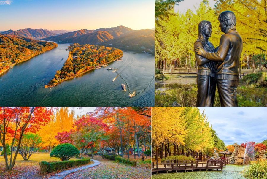 Nằm duyên dáng bên dòng sông Bắc Hán, đảo Nami từ lâu đã nổi tiếng là điểm đến không thể thiếu trong các hành trình du lịch Hàn Quốc mùa thu. Đặc biệt, sau khi trở thành bối cảnh chính của bộ phim truyền hình kinh điển “Bản tình ca mùa đông”, nơi đây càng thu hút hàng triệu lượt khách ghé thăm mỗi năm. Vào mùa thu, Nami như được khoác lên mình tấm áo mới rực rỡ với những hàng cây ngân hạnh vàng rực, cây phong đỏ cháy kéo dài thẳng tắp hai bên lối đi, tạo nên khung cảnh lãng mạn chẳng khác nào một thước phim.