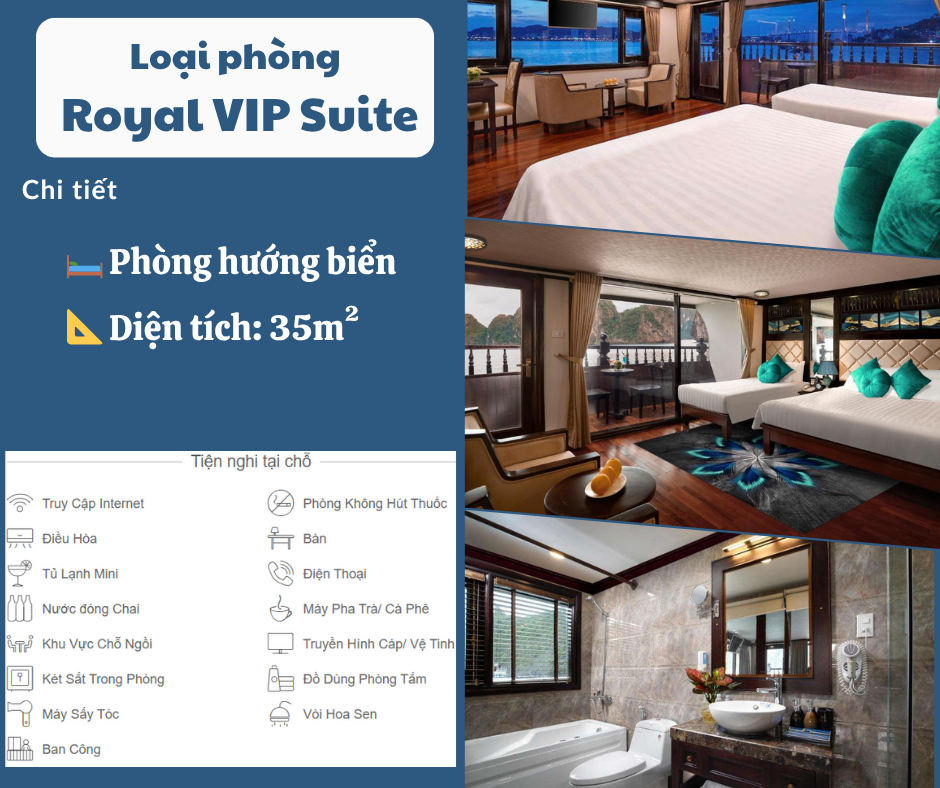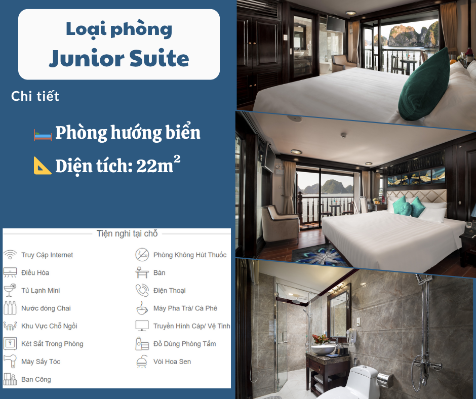 Thưởng thức đồ uống chào mừng trong khi quản lý tàu đưa ra một giới thiệu ngắn gọn, hướng dẫn an toàn cho quý khách trong suốt hành trình trên du thuyền. Nhận phòng và bắt đầu du ngoạn và khám phá vịnh Hạ Long.