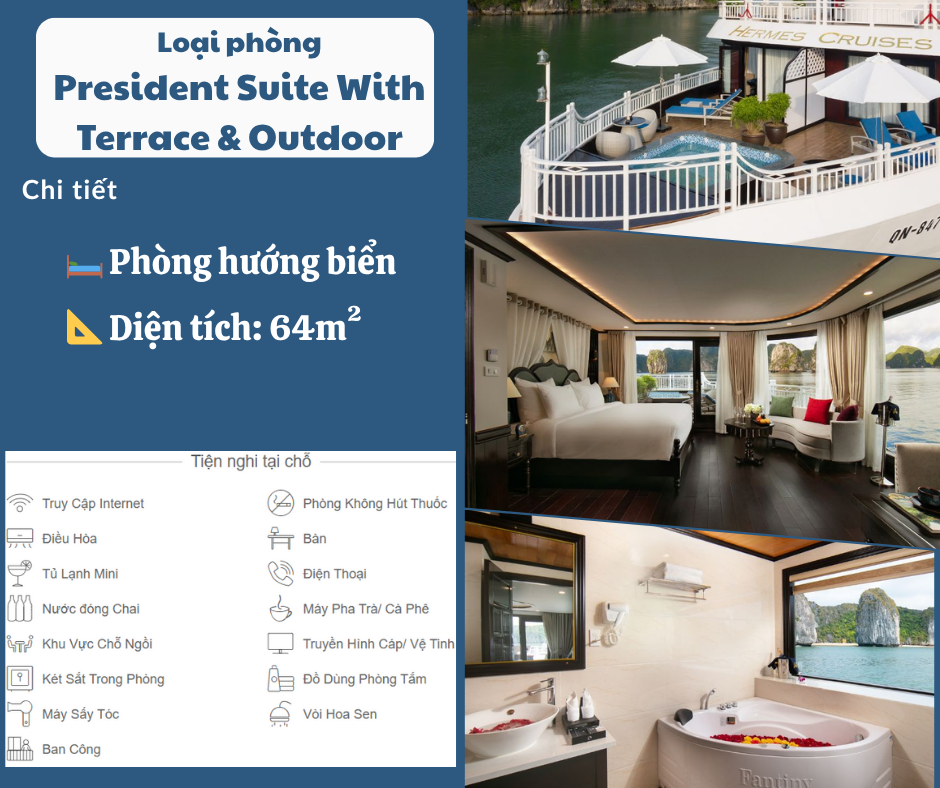 Tặng 01 rượu vang Pháp phòng President, set-up hoa quả