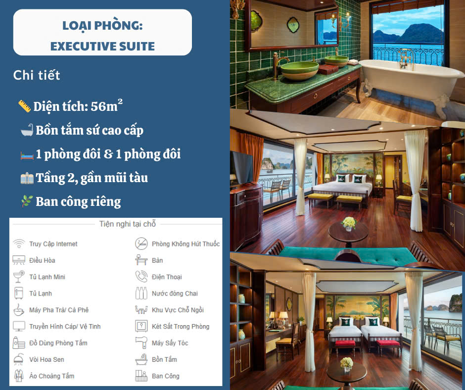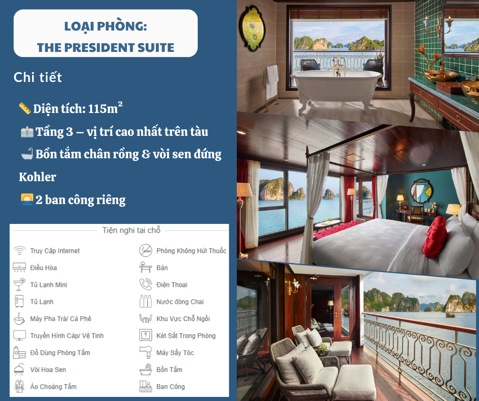 Sử dụng miễn phí các tiện nghi trên tàu (không bao gồm dịch vụ spa); phí cảng hoặc neo đậu; thuế.