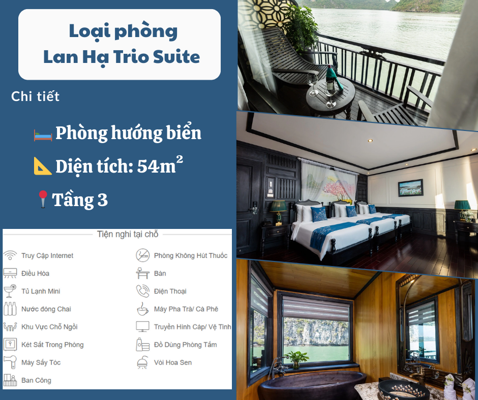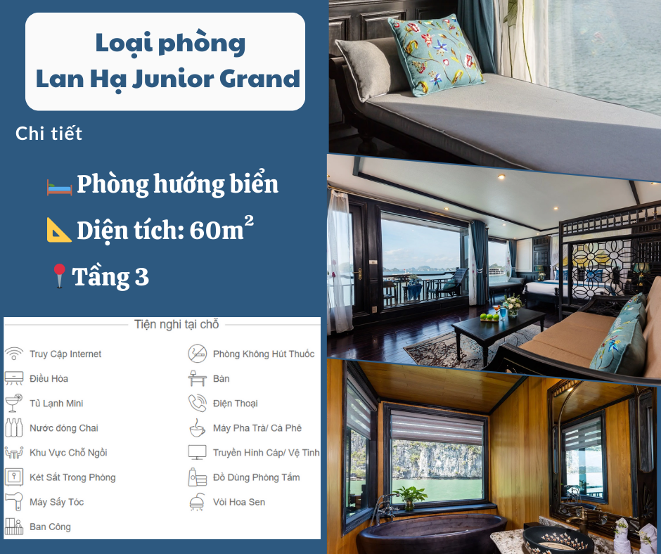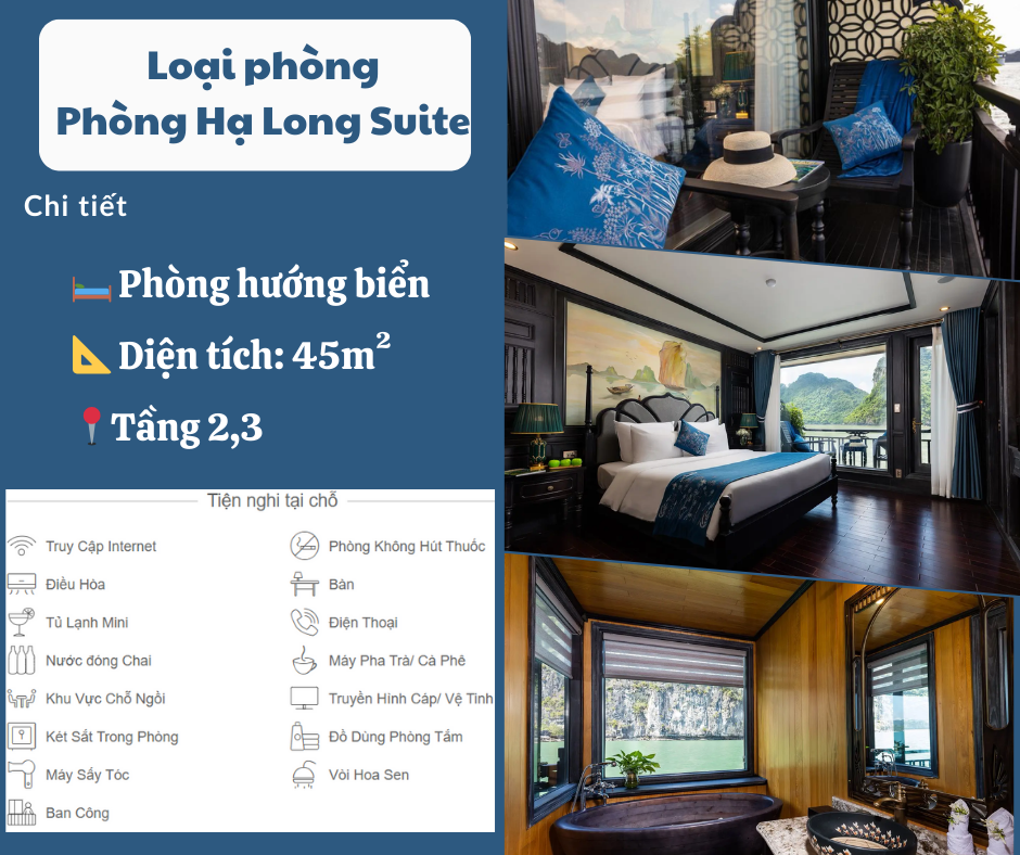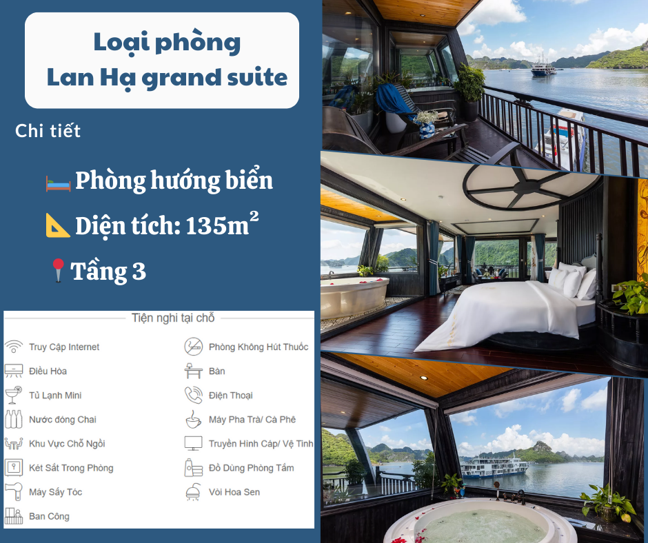 12:15 You will be transferred by speedboat/sub-boat to La Regina Grand Cruise. Welcome on board, relax with a welcome drink while the Cruise Manager will inform you about the regulations, activities and safety on board. The cruise will start the journey through Lan Ha Bay.