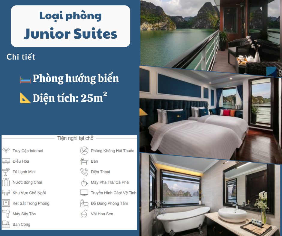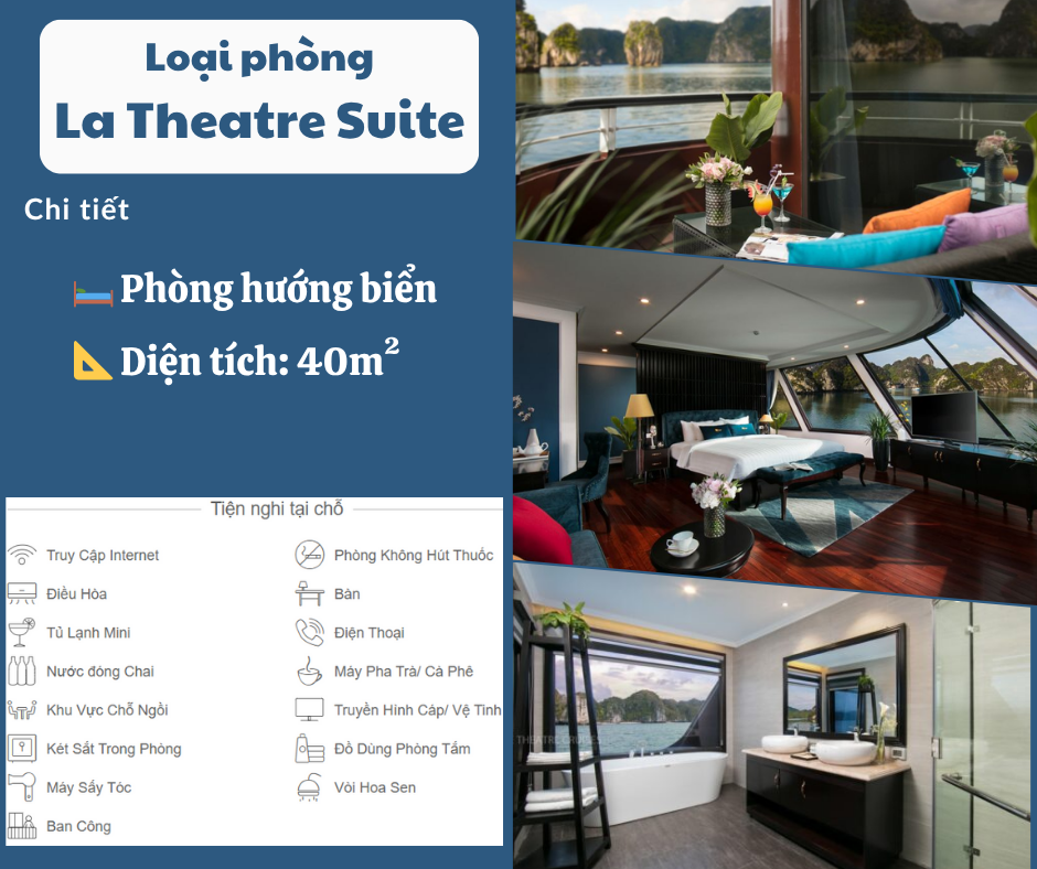 13:00 Buffet lunch, buffet lunch will be served at Opera restaurant on the 2nd floor, this is also the time when Le Theatre cruise passes through the majestic limestone mountains. You will have lunch, enjoy the scenery, and explore the natural heritage of Ha Long Bay - Lan Ha.