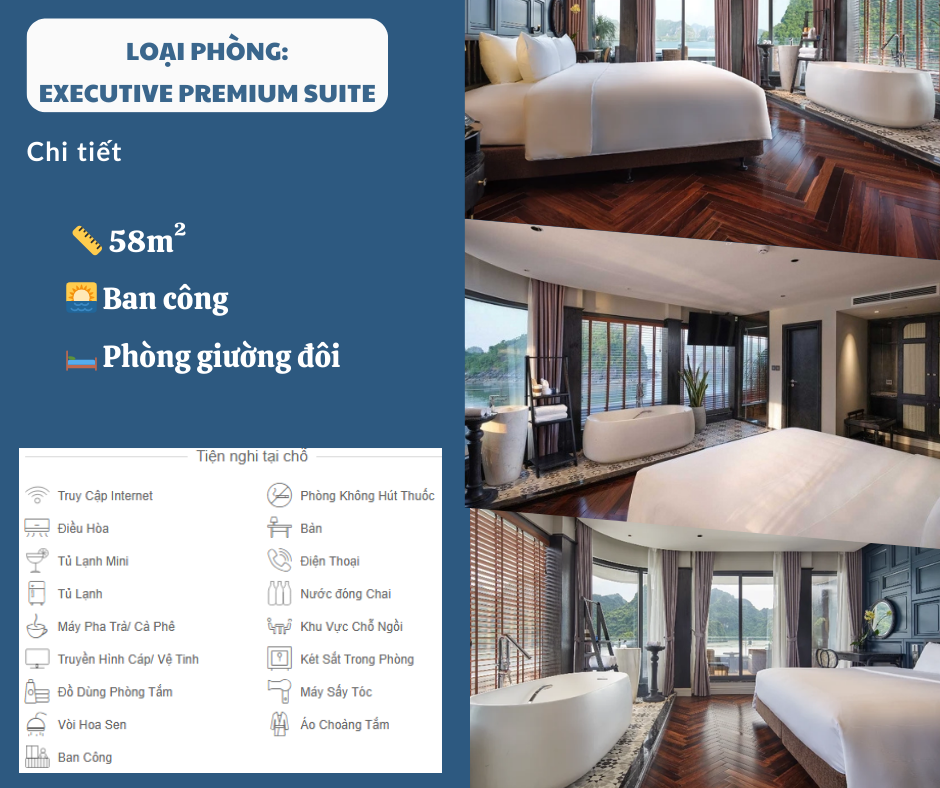 Phòng nghỉ trên du thuyền sang trọng có bồn tắmvà sân tắm nắngriêng phòng.