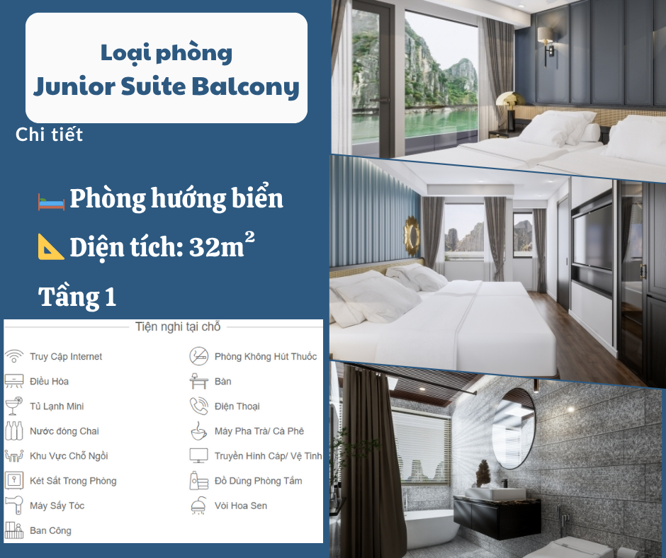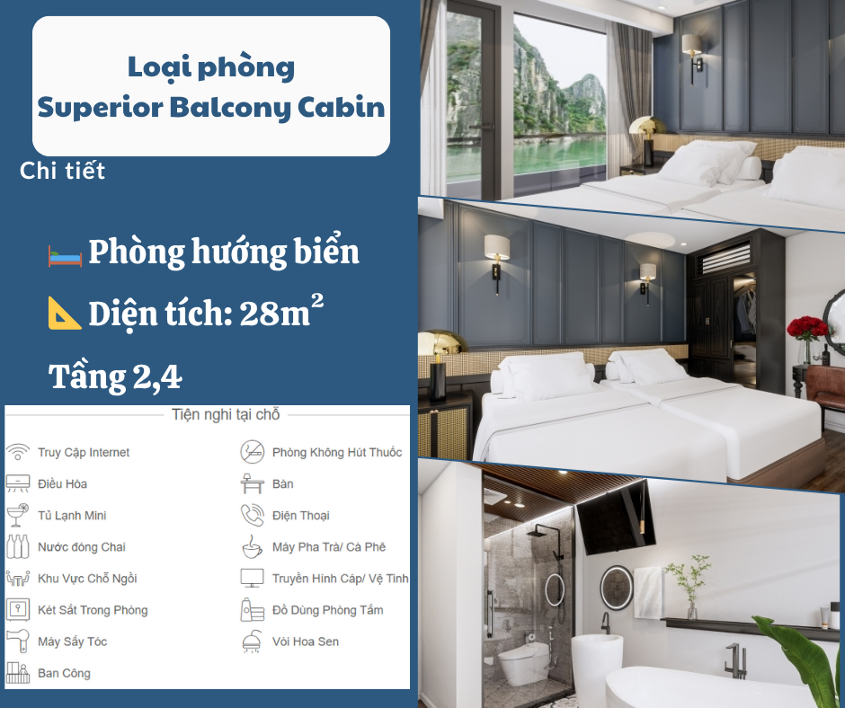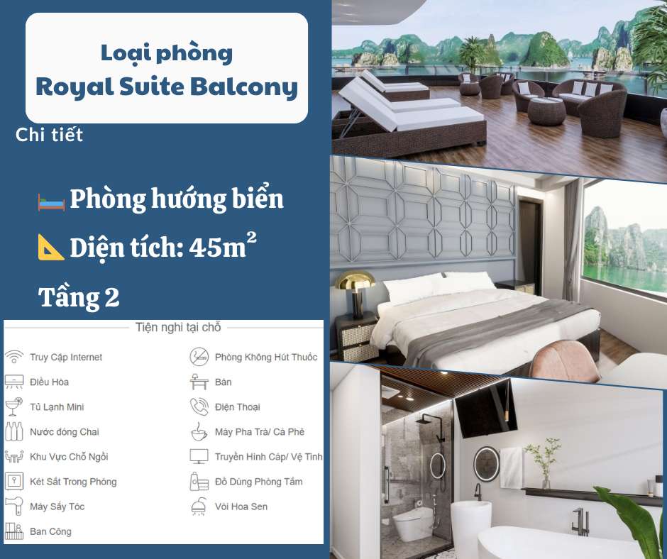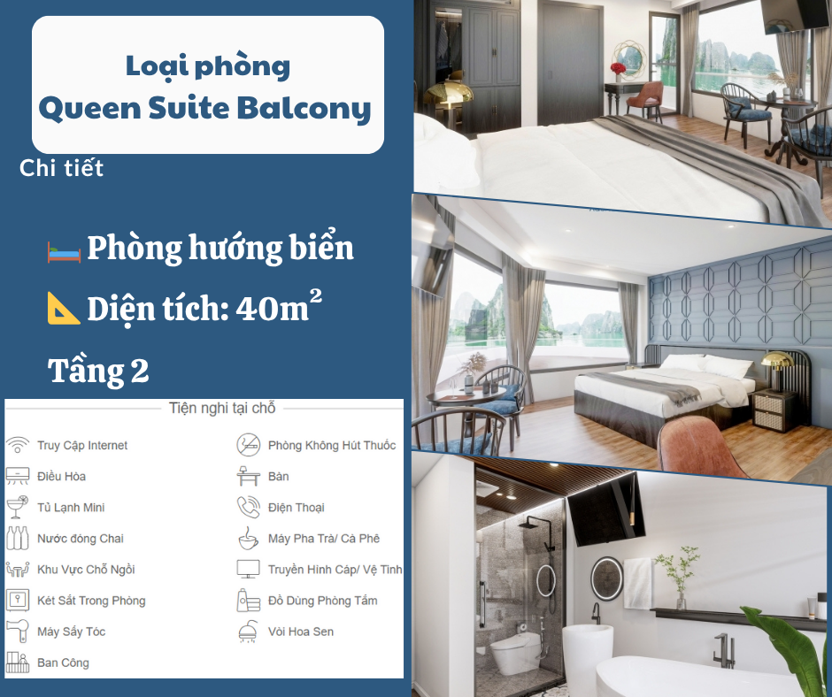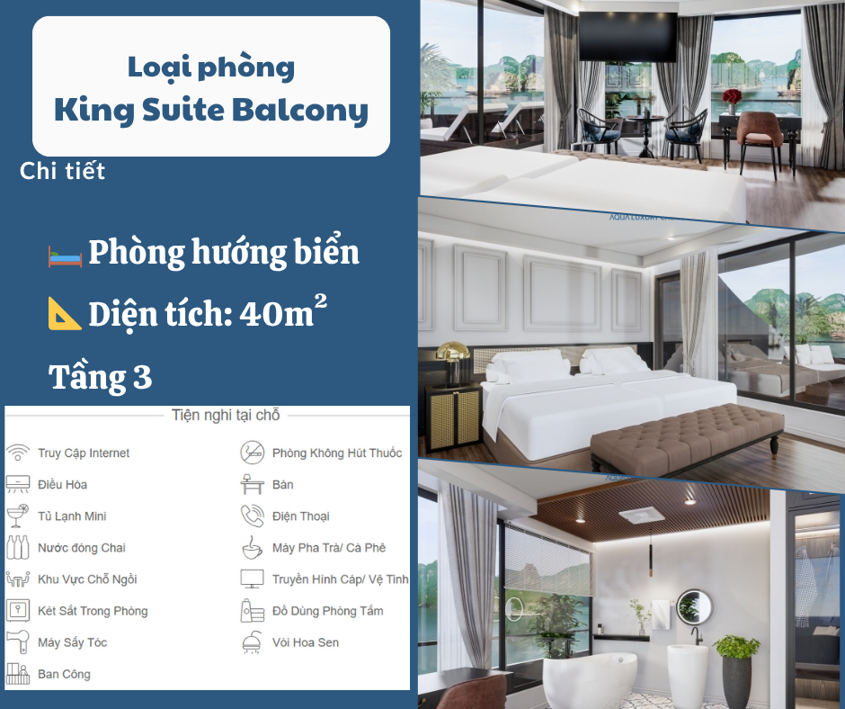 Hơn cả một du thuyền tham quan, Aqua Luxury Cruise được thiết kế để trở thành một chốn nghỉ dưỡng lý tưởng – nơi du khách có thể hòa mình vào thiên nhiên, tái tạo năng lượng và gạt bỏ mọi căng thẳng của cuộc sống thường nhật. Các tiện nghi được bố trí chu đáo, đảm bảo sự riêng tư và thoải mái cho mọi du khách: từ cabin sang trọng với tầm nhìn toàn cảnh, nhà hàng cao cấp, spa thư giãn, đến boong tắm nắng rộng rãi và khu vực giải trí độc đáo.