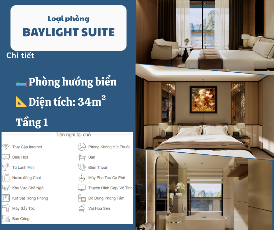 20:45: After finishing dinner, you can enjoy the landscape of the bay at night up on the top deck, relax with romantic ballad music, enjoy drinks from the bar try your luck at squid fishing, watch a movie, enjoy Spa treatment, relax in your room.
