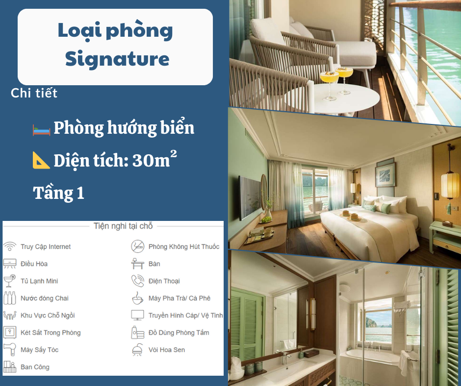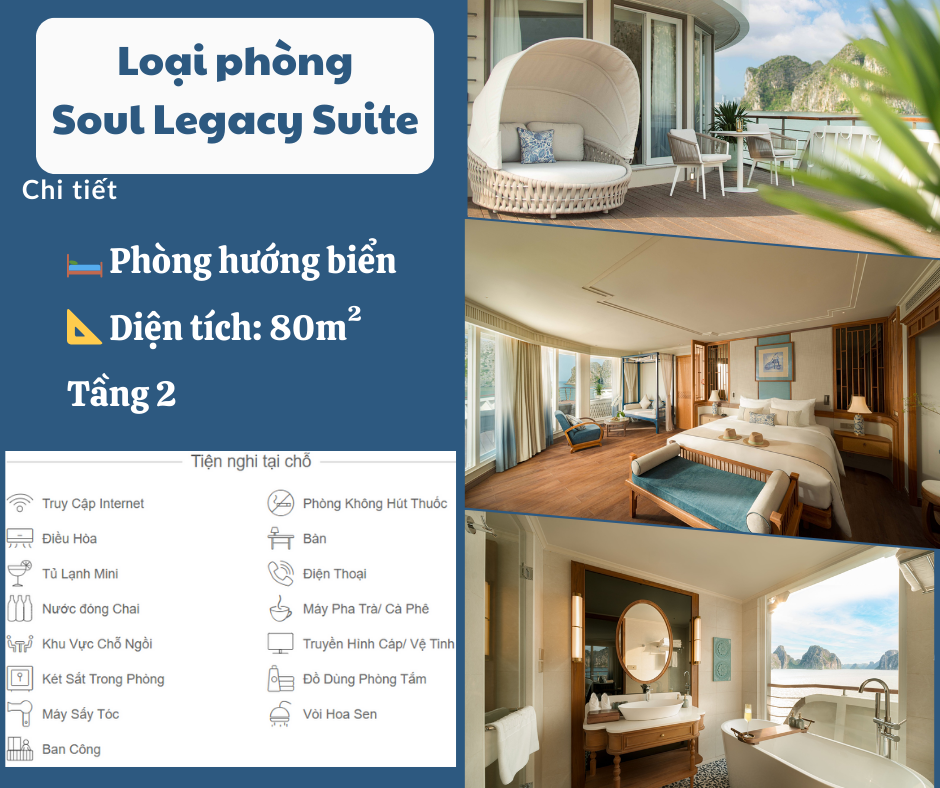 Relax with included wellness treatment: 10' herbal foot soak & 30' rejuvenating therapy. Guests may choose service time flexibly. This experience brings absolute relaxation and distinguishes the cruise journey in Halong.