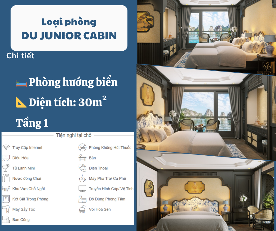 Nhận phòng và thưởng thức bữa trưa sang trọng trên tàu, chuẩn bị cho chuyến khám phá Vịnh Hạ Long đầy thú vị.