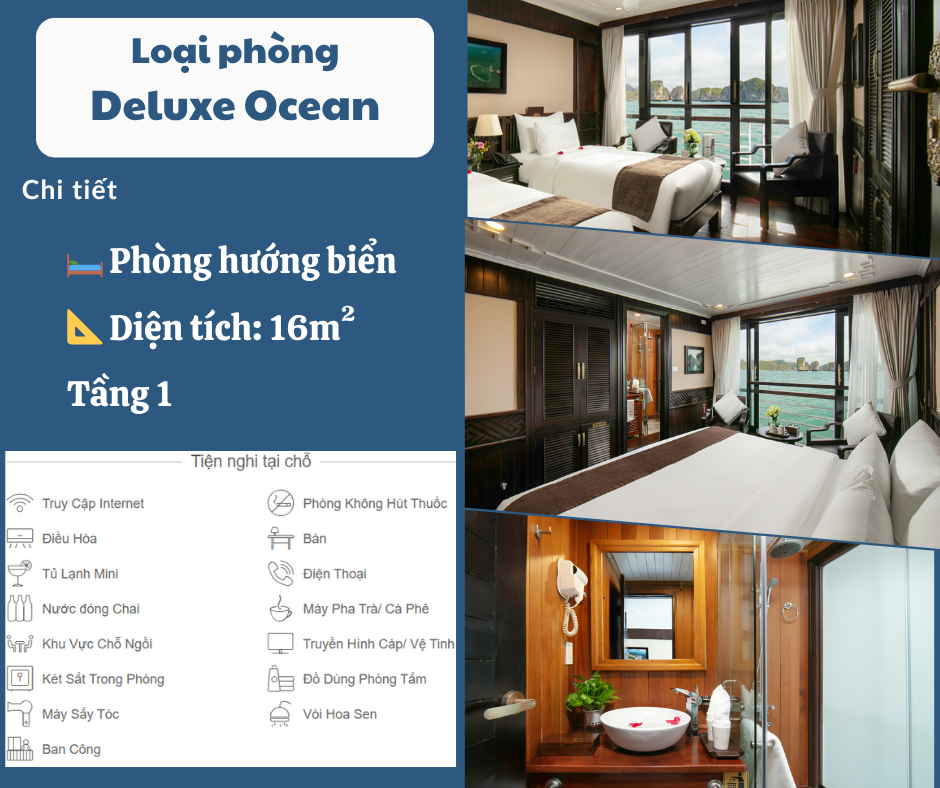 Du thuyền là sự kết hợp hoàn hảo giữa phong cách châu Âu cổ điển và nét mộc mạc đậm chất Việt. Lily Cruise tạo nên dấu ấn riêng biệt nhờ thiết kế tinh tế, nhà hàng cao cấp, thực đơn được chọn lọc kỹ lưỡng và 20 cabin hướng biển độc đáo.
