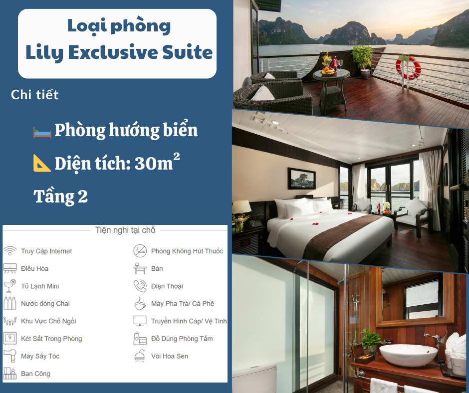 Lily Cruises là một trong những du thuyền 4 sao sang trọng bậc nhất trên Vịnh Hạ Long – biểu tượng của vẻ đẹp thiên nhiên Việt Nam.
