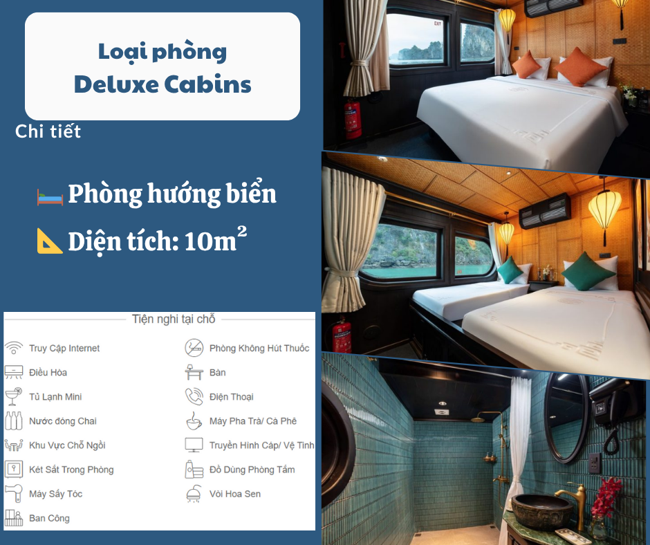 Cabin sang trọng có phòng tắm riêng với điều hòa, nước nóng