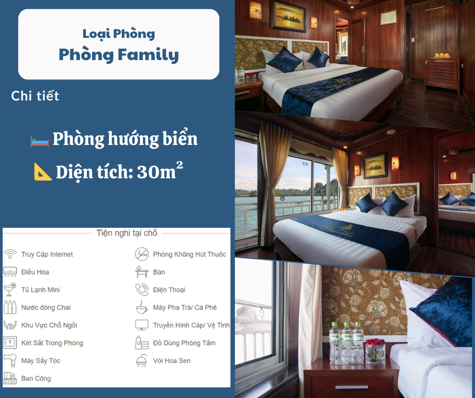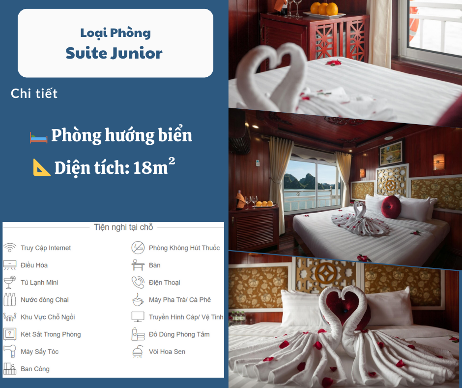 Các bữa ăn trên tàu: 1 Bữa trưa và 1 Bữa tối ngày đầu tiên, 1 Bữa sáng nhẹ và 1 Bữa trưa ngày thứ 2