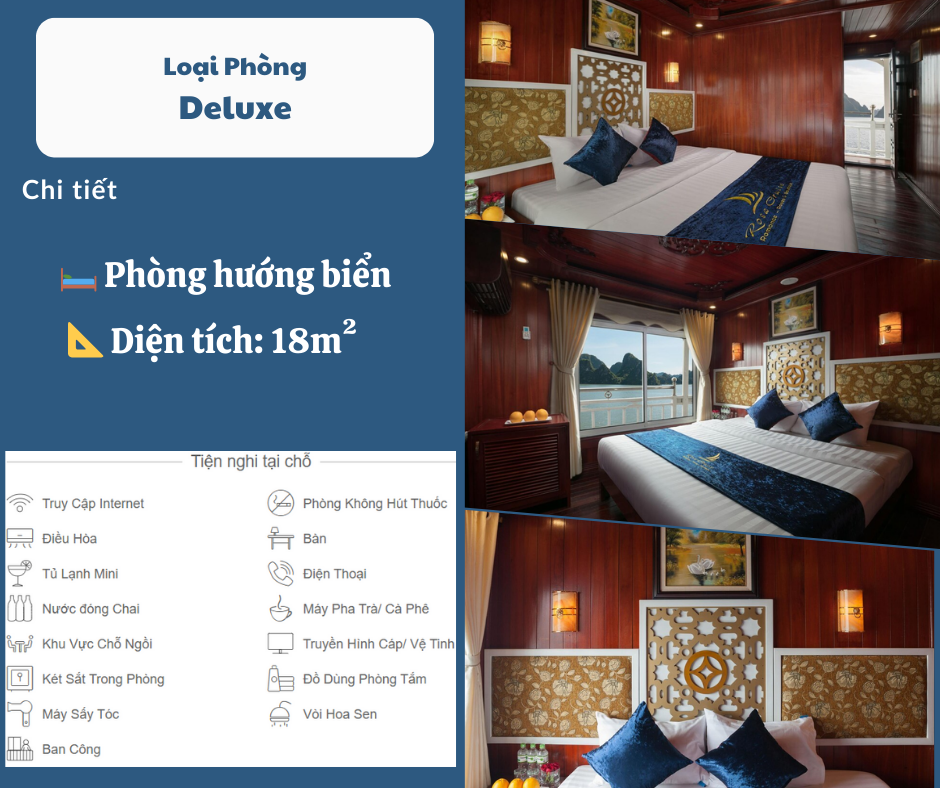 Nếu bạn đã nhiều lần đến vịnh Hạ Long vậy hãy thử một lần đến vịnh Lan Hạ, nơi đây toát lên vẻ đẹp yên bình, hoang sơ không ồn ào. Du thuyền Rosa Boutique với lợi thế là tàu nhỏ dễ dàng đưa bạn qua nhiều địa điểm đẹp trên vịnh như biển Ba Trái Đào, làng Việt Hải và hang Sáng Tối. Tại đây, du khách được tự do tham quan, trải nghiệm và khám phá các hoạt động như chèo thuyền kayak, đạp xe quanh làng chài, bơi lội trong làn nước trong xanh. Du thuyền Rosa Boutique có 12 cabin được thiết kế theo kiến trúc Việt Nam truyền thống, mỗi cabin đều được trang bị tiện nghi cơ bản và không có ban công. Nhà hàng trên tàu phục vụ bữa sáng buffet, bữa trưa kiểu Việt và bữa tối nướng BBQ. Khu vực sundeck là địa điểm lý tưởng để tắm nắng hay ngắm nhìn cảnh hoàng hôn tuyệt đẹp.