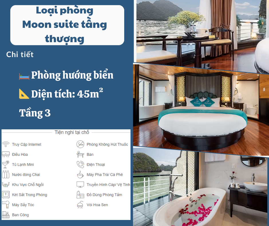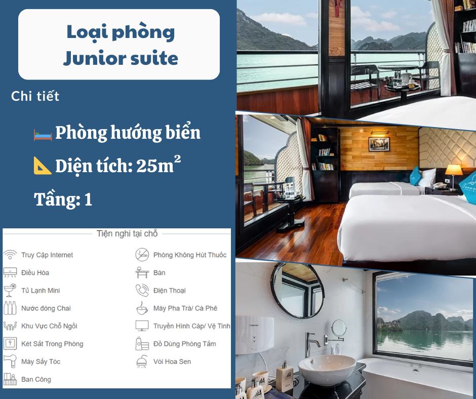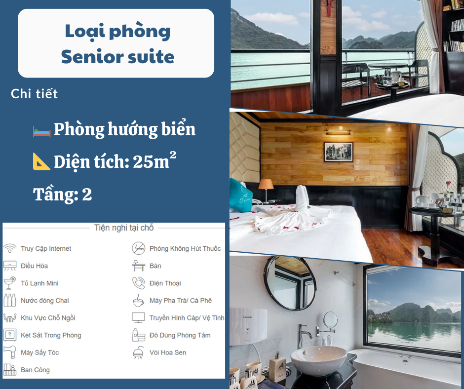 Các bữa ăn trên tàu: 1 Bữa trưa và 1 Bữa tối ngày đầu tiên, 1 Bữa sáng nhẹ và 1 Bữa trưa ngày thứ 2