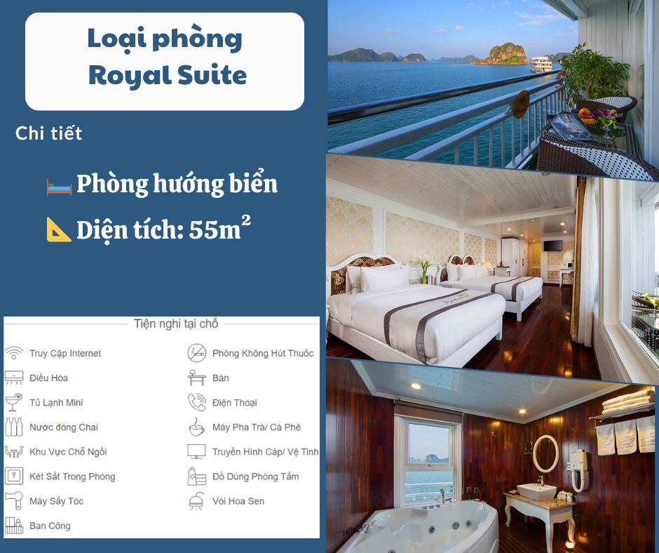Phòng ngủ sang trọng có điều hòa và phòng tắm riêng trên du thuyền