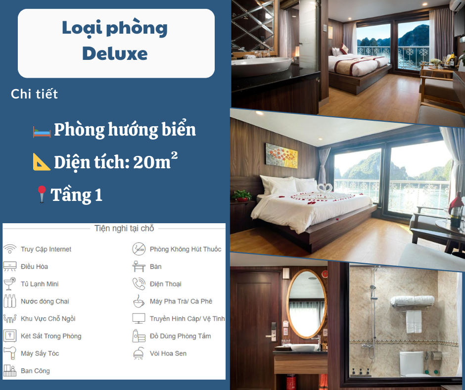Các bữa ăn trên tàu: 1 Bữa trưa và 1 Bữa tối ngày đầu tiên, 1 Bữa sáng nhẹ và 1 Bữa trưa ngày thứ 2