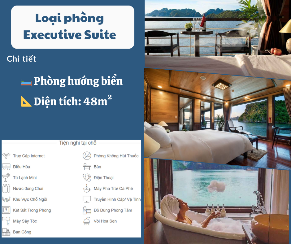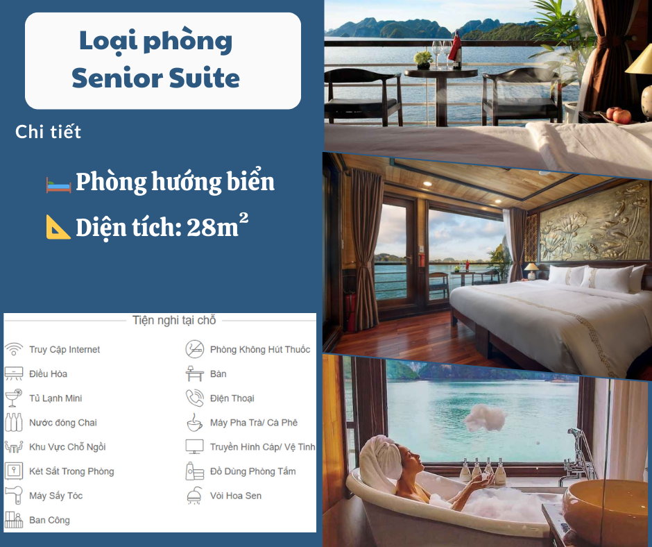 11:45 – 12:00 The cruise crew will welcome you at the Waiting Room, Tuan Chau International Port and complete check-in procedures.