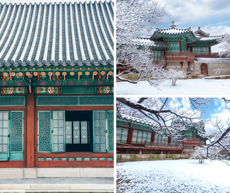 Khu Seonjeongjeon Hall: Nơi nhà vua từng làm việc, nay trở thành điểm chụp ảnh tuyệt đẹp với khung nền phủ tuyết trắng muốt.